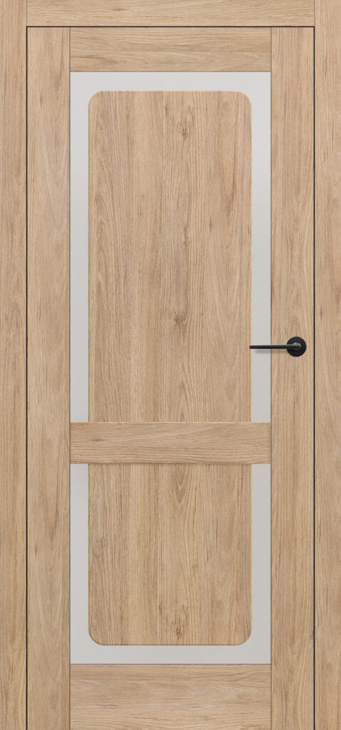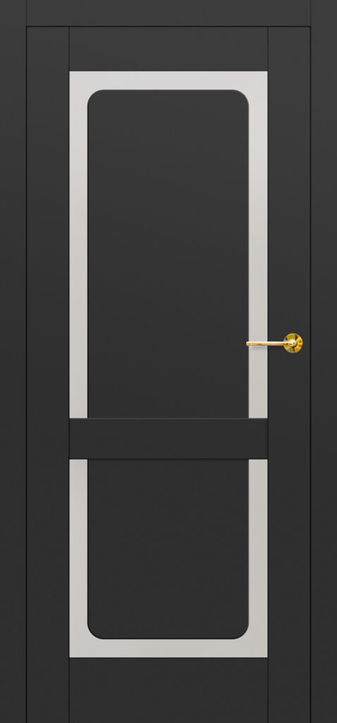 „Jasmin 5“ ist ein Modell, das mit seiner schlichten, aber markanten Form die Aufmerksamkeit auf sich zieht. Diese aus PREMIUM- oder ST CPL-Furnieren gefertigte Tür zeichnet sich durch eine zarte, 3 mm starke schwarze Paneelkante aus, die ihr eine subtile Eleganz verleiht. Die Verwendung von gehärtetem Glas sorgt für eine optimale Raumausleuchtung und gewährleistet gleichzeitig die Privatsphäre. Der Bella Slim Griff in mattem Schwarz passt perfekt zum Rest der Tür und bildet ein harmonisches Ganzes, das sich in jede moderne Einrichtung einfügt.