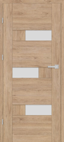 Die Variante Surmia 1 hat drei schmale horizontale Verglasungen, die eine freie, asymmetrische Komposition ergeben. Sie lassen das Licht herein und bereichern das Design des Flügels, aber auch mit Klarglas schützen sie die Privatsphäre des Benutzers, zum Beispiel im Arbeitszimmer. Mit Milchglas hingegen sorgen sie für eine intime Atmosphäre im Schlafzimmer, Kinderzimmer oder sogar im Badezimmer.