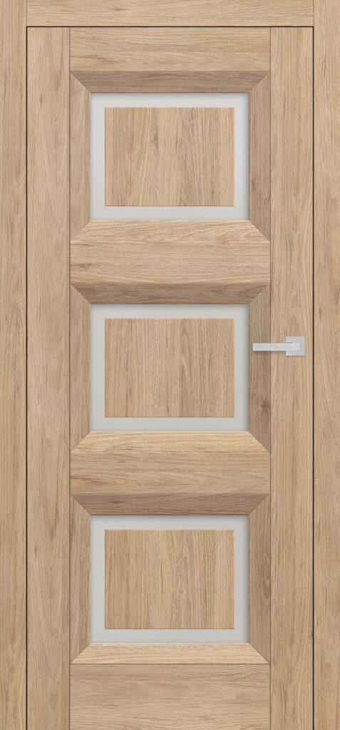 „Werbena 4“ ist ein Türmodell, das eleganten Minimalismus mit moderner Funktionalität verbindet. Die Tür ist mit einer Rahmentechnologie in PREMIUM- oder CPL-Furnier gefertigt, die einen Hauch von Frische und Subtilität in die Einrichtung bringt. Ein besonderes Merkmal dieses Modells ist die tiefe abgeschrägte Leiste, die das Klarglas einrahmt und so einen markanten Rahmen bildet. Je nach Vorliebe kann das Glas entweder milchig oder klar sein und bietet so eine Vielzahl von Gestaltungsmöglichkeiten je nach räumlichen Anforderungen. Die Verwendung eines dunklen Griffs wie dem Bella Slim in glänzender Chromausführung verleiht der Tür einen raffinierten Touch und unterstreicht ihr modernes Design.