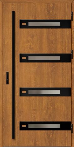Exterior doors made of steel sheet, protected by PVC laminate, which is characterized by high resistance to changing weather conditions, UV radiation and mechanical damage. The texture adapted to the decorative motif creates a product with high aesthetic qualities.