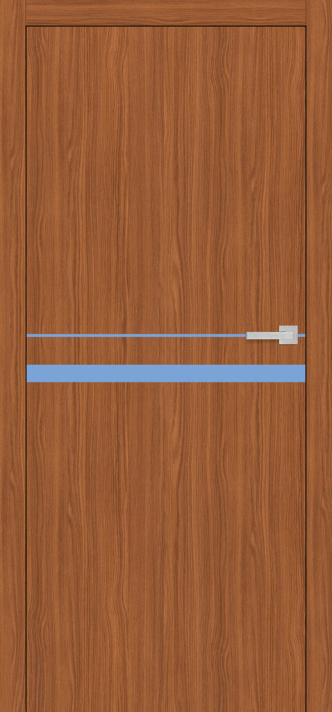 Intarsia is a decorative insert that perfectly matches the surface of the veneer. It appears on both sides of the door in blue.