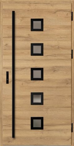Exterior doors made of steel sheet, protected by PVC laminate, which is characterized by high resistance to changing weather conditions, UV radiation and mechanical damage. The texture adapted to the decorative motif creates a product with high aesthetic qualities.