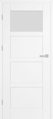 Wariant Juka 7 należy do subserii z równomiernymi podziałami skrzydła na cztery poziome płyciny. Tu górne pole jest przeszklone (do wyboru szkłem matowym, przezroczystym lub czarnym), pozostałe są pełne. Prezentowany model to trafny wybór m.in. do łazienki, toalety, pralni.