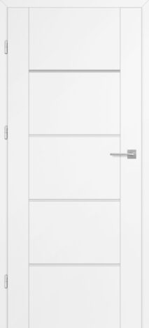 - dwa zawiasy (za dopłatą trzeci) ukryte w skrzydle bezprzylgowym malowane w kolorze srebrnym (opcjonalnie za dopłatą w kolorze czarnym, złotym lub białym); zawiasy dostarczane oraz wyceniane są z ościeżnicą