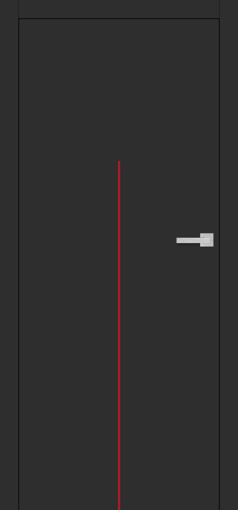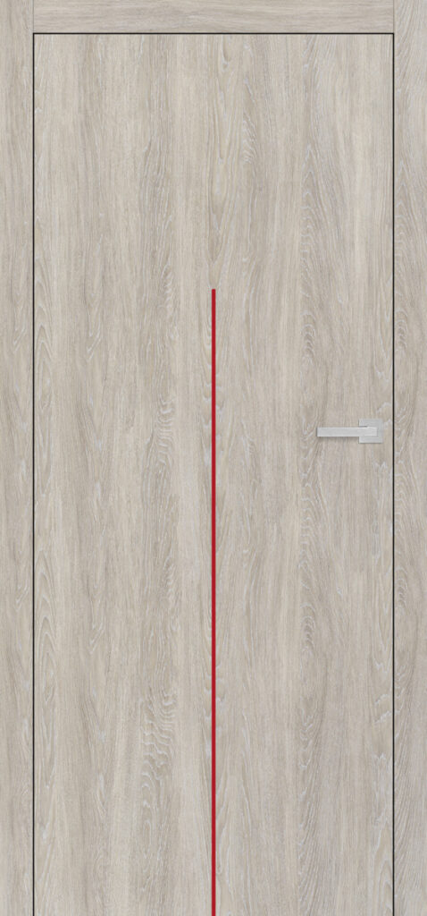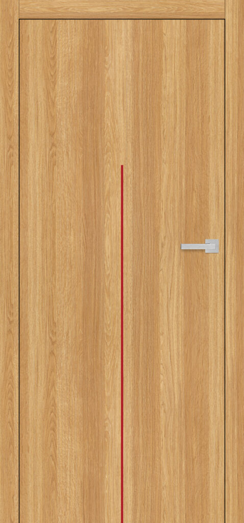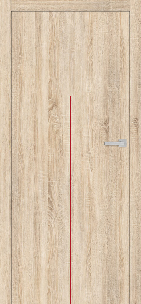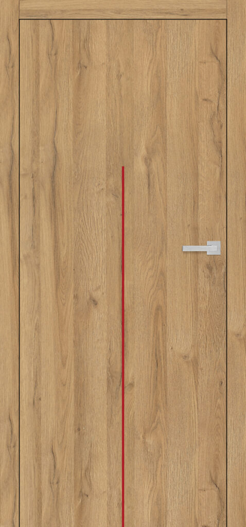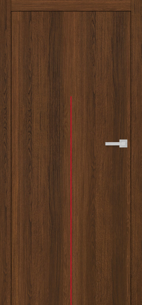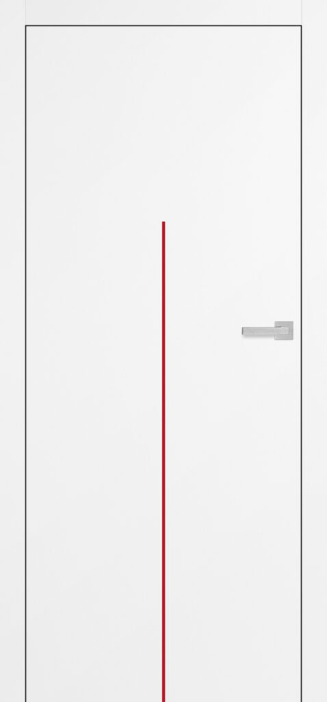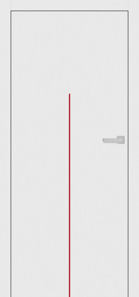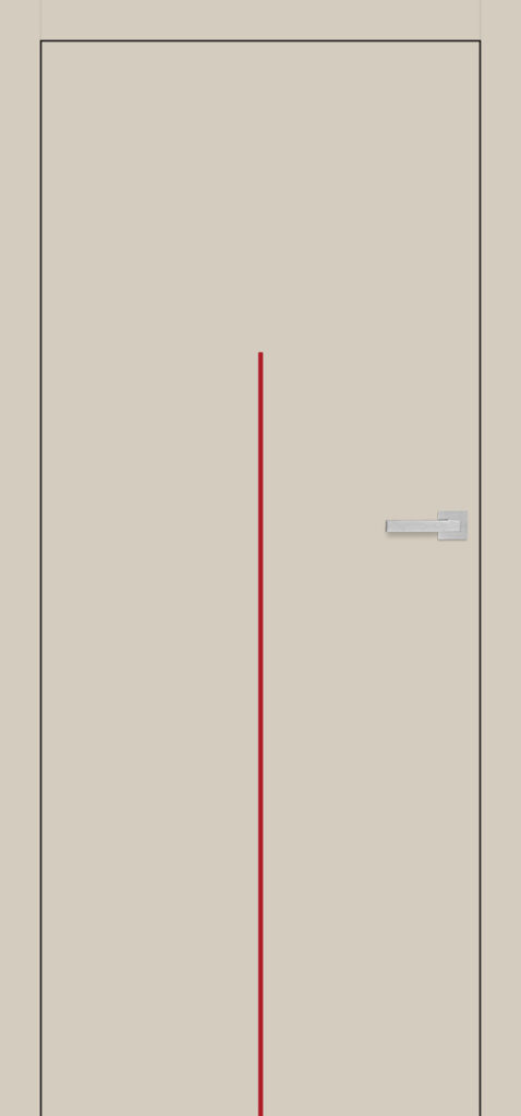 Les incrustations sont des inserts décoratifs parfaitement affleurants à la surface du placage et apparaissent sur les deux côtés de la porte en rouge.