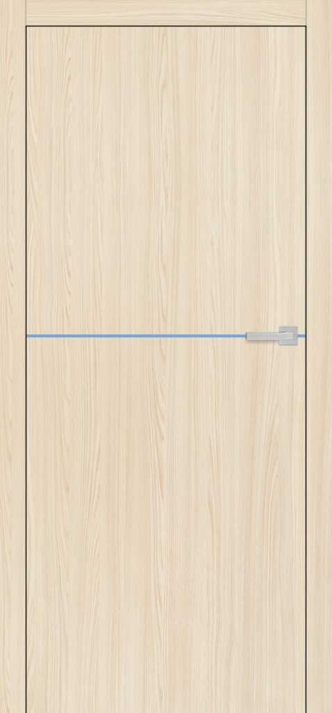 Les incrustations sont des inserts décoratifs parfaitement affleurants à la surface du placage, apparaissant sur les deux côtés de la porte en bleu.