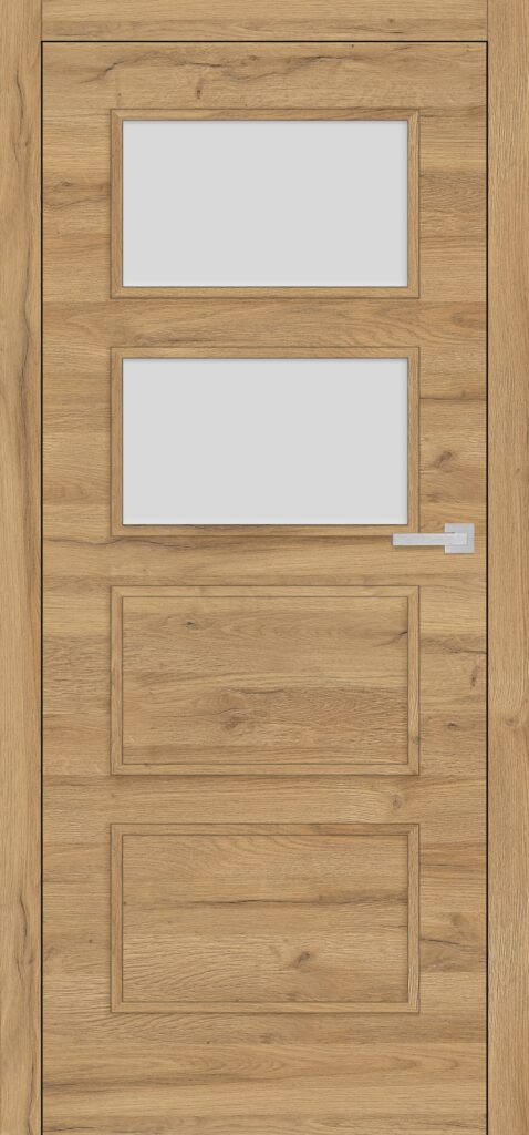 Wariant Sorano 6 cechuje się czterema dużymi prostokątnymi płycinami obwiedzionymi wąską ramką. Dwie górne są przeszklone (szyba mleczna lub przezroczysta), dwie dolna – pełne. Ten model polecamy do domowego biura, sypialni czy pokoju dziecięcego. A z szybą nieprzezierną znakomicie sprawdzi się także w łazience czy toalecie! Model ten będzie harmonizować z wariantami Sorano 4, 5 i 7 (wiele innych wariantów szklenia) oraz Sorano 8 (skrzydło pełne).