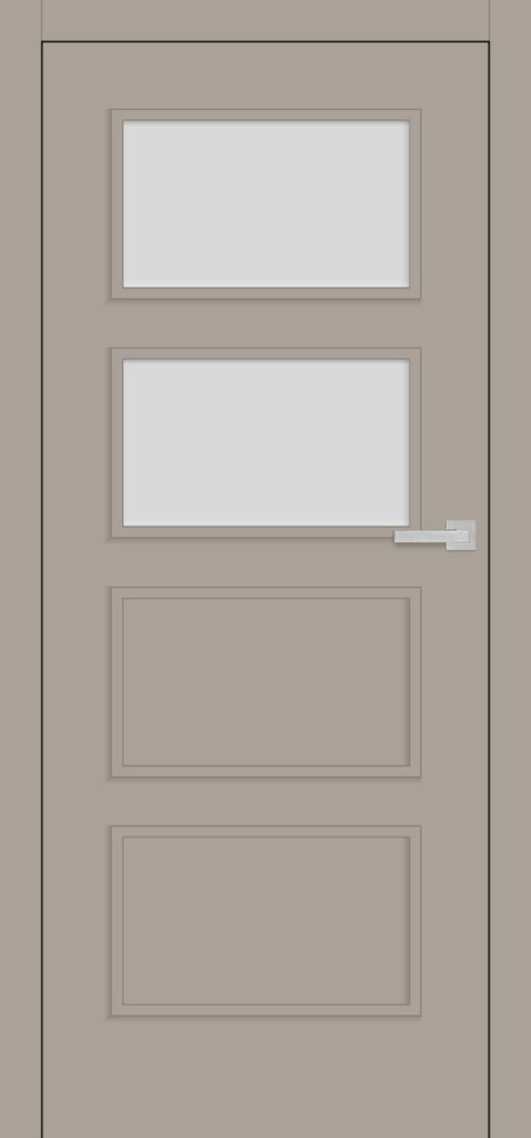 Drzwi Sorano to ukłon w stronę geometrycznego minimalizmu w jego najbardziej wyważonej, poziomej odsłonie. Gładkie skrzydło wzbogaciliśmy o rytmiczny układ prostokątnych ramek – pełnych lub przeszklonych – dostępnych w trzech rozmiarach. Dzięki temu każdy model łatwo dopasujesz do charakteru wnętrza i własnego poczucia proporcji.