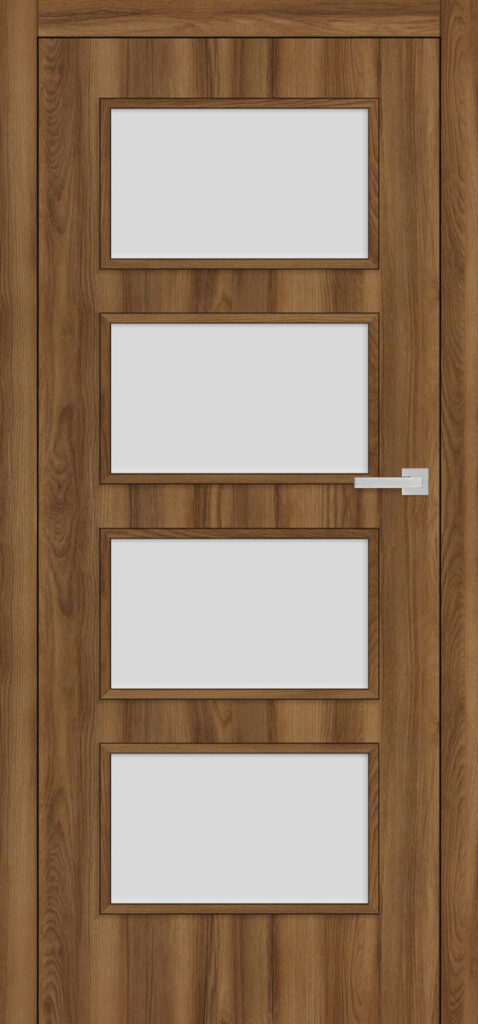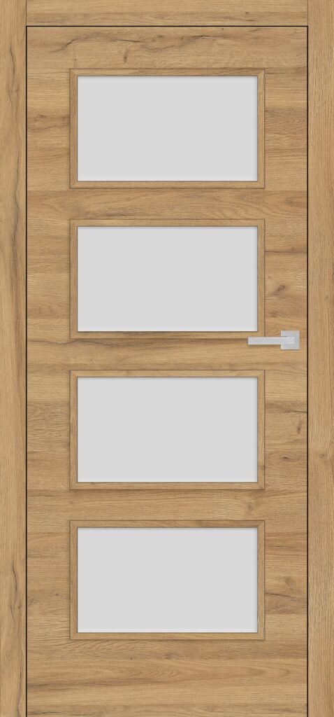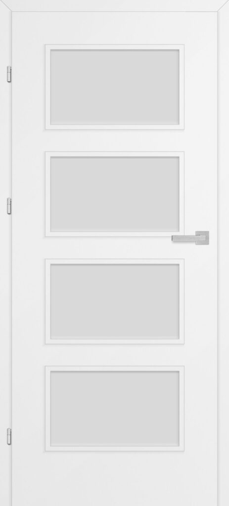 Wariant Sorano 4 wyróżnia się czterema dużymi prostokątnymi płycinami obwiedzionymi wąską ramką. Wszystkie są przeszklone (do wyboru szyba przezroczysta lub mleczna). To znakomita propozycja do salonu, domowego biura, sypialni czy pokoju dziecięcego. Będzie harmonizować z modelami Sorano 5–7 (wiele innych wariantów szklenia) i Sorano 8 (skrzydło pełne).