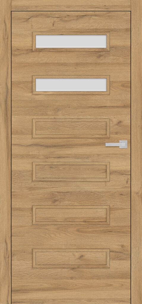 Drzwi Sorano to ukłon w stronę geometrycznego minimalizmu w jego najbardziej wyważonej, poziomej odsłonie. Gładkie skrzydło wzbogaciliśmy o rytmiczny układ prostokątnych ramek – pełnych lub przeszklonych – dostępnych w trzech rozmiarach. Dzięki temu każdy model łatwo dopasujesz do charakteru wnętrza i własnego poczucia proporcji.
