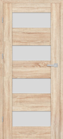 A Debecja 1 változat maximális üvegezésű modell – 4 keskeny, széles keresztlécekkel elválasztott táblával. Ugyanakkor a viszonylag kis üvegarány lehetővé teszi az ajtó beengedését a fénysugarakba, de védi a felhasználók magánéletét és megakadályozza a túlzott zaj bejutását.