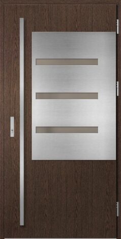 Acéllemezből készült, PVC-furnérral védett ajtók, amelyeket a változó időjárási viszonyokkal, UV-sugárzással szembeni nagyfokú ellenálló képesség jellemez. A kiváló minőségű anyagok használata nemcsak az esztétikumot, hanem a tartósságot és a biztonságot is garantálja hosszú éveken át.