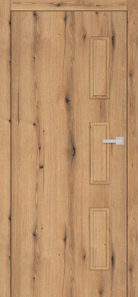 Wariant Ansedonia 6 to klasyka w nowoczesnej odsłonie. Model ma trzy wąskie, podłużne ramki z wypełnieniem litym. Płyciny te tworzą pionową linię umieszczoną asymetryczne – obok klamki. Model ten polecamy do pomieszczeń wymagających odseparowania od pozostałych części mieszkania, np. sypialni, pokoju dziecięcego, a także garderoby, spiżarni czy pralni.