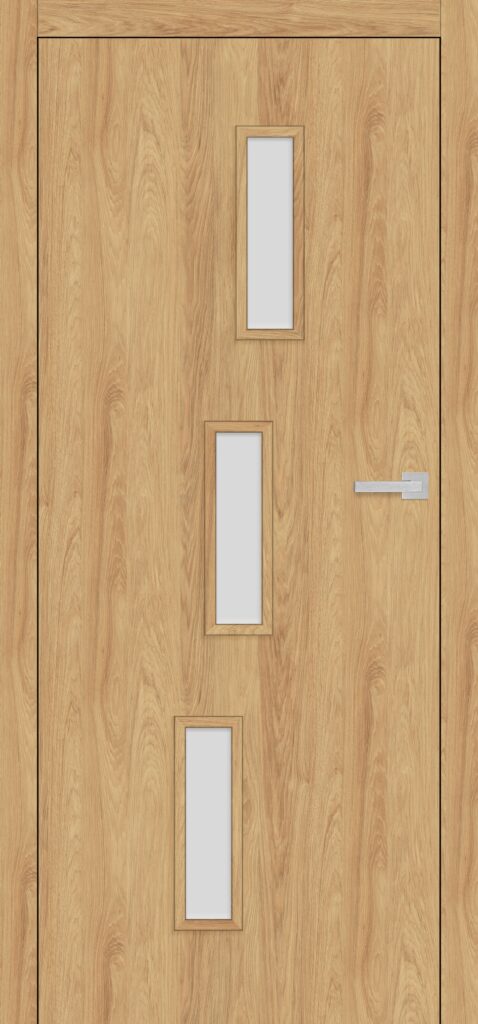 Wariant Ansedonia 7 ma w sobie nowoczesną swobodę. Charakterystyczne dla kolekcji trzy podłużne ramki tworzą tu asymetryczny, schodkowy układ. Ponieważ wszystkie są przeszklone, świetnie sprawdzą się m.in. w salonie, gabinecie, sypialni czy pokoju dziecięcym. Z uwagi na proporcję przeszkleń do skrzydła, nic nie stoi na przeszkodzie, by zastosować je także w kuchni czy nawet w łazience.