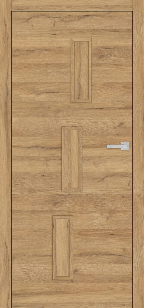 Wariant Ansedonia 9 otrzymał trzy wąskie, podłużne ramki w asymetrycznym, schodkowym układzie. Ponieważ mają one wypełnienie lite, model ten polecamy do pomieszczeń, w których niezbędna jest cisza (np. domowego biura, sypialni, pokoju dziecięcego), a ponadto do garderoby, spiżarni czy pralni.