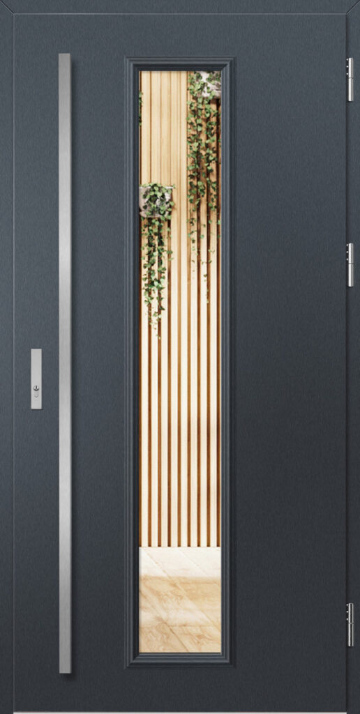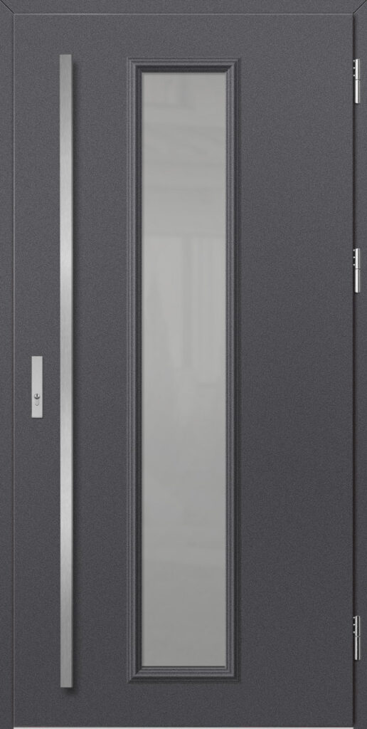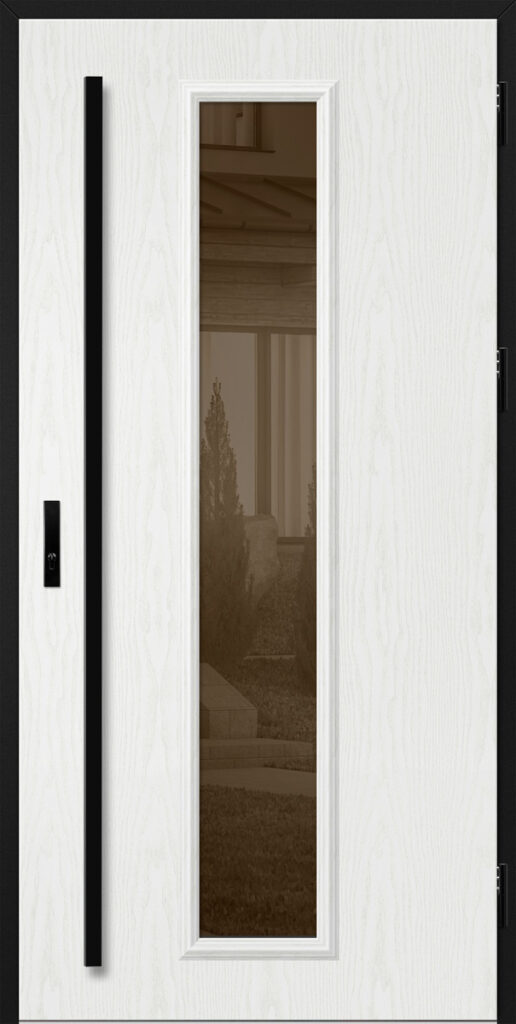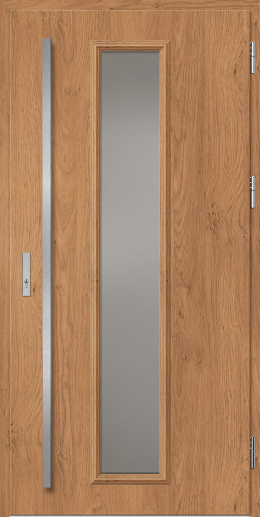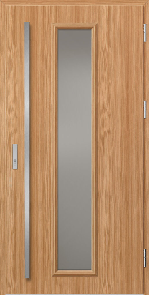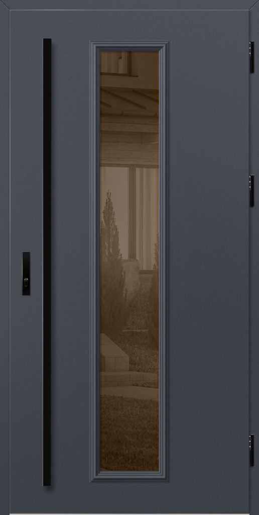 Drzwi wykonane z blachy stalowej, zabezpieczone okleiną PCV, która odznacza się wysoką odpornością na zmienne warunki atmosferyczne, promieniowanie UV. Zastosowanie wysokiej jakości materiałów, gwarantuje nie tylko estetykę, ale również trwałość i bezpieczeństwo na lata.
