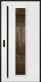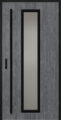Ościeżnica aluminiowa, malowana na czarno i oklejona w kolorze skrzydła drzwiowego wyposażona w ciepły próg aluminiowy i pełną listwę zaczepową z regulacją docisku dla drzwi wykonanych w technologii THERMO HOT.