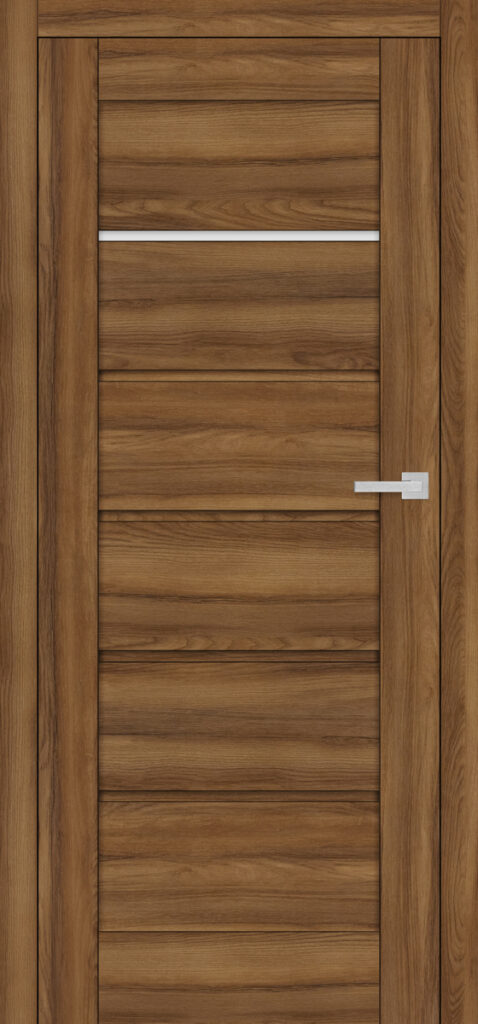 Wariant Daglezja 5 to drzwi z pojedynczym wąskim przeszkleniem w górnej części skrzydła. Szczelina wypełniona szkłem ma charakter czysto dekoracyjny. Zwłaszcza w wersji matowej zapewnia podwyższony poziom ochrony prywatności, dlatego sprawdzi się m.in. w łazience czy toalecie sąsiadującej z uczęszczanym korytarzem.
