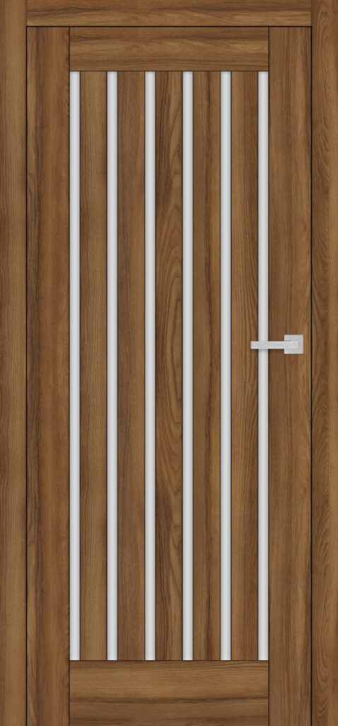 Wariant Epimedium 1 to skrzydło, w którym wszystkie listwy wypełniające ramę rozdzielone są szczelinowymi przeszkleniami. Wąskie szybki dodają drzwiom lekkości, umożliwiają też przenikanie światła. Niemniej gęsty rytm poprzeczek chroni prywatność użytkowników. Model nadaje się więc do pomieszczeń o dowolnej funkcji.