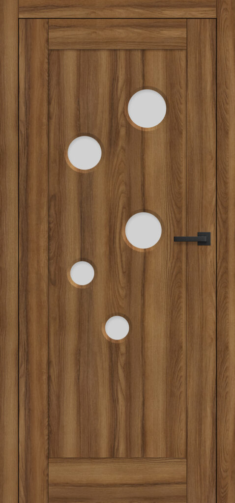 Wariant Ewodia 2 urzeka fantazyjną kompozycją przeszkleń. Okrągłe otwory w swobodnym układzie budzą skojarzenia z bąbelkami w napoju albo bańkami mydlanymi unoszonymi przez wiatr. Każdego dnia będą wprowadzać użytkowników w doskonały nastrój.