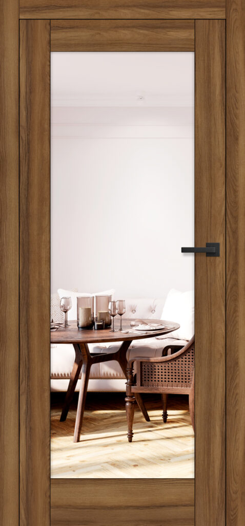 Niezwykle interesująco prezentuje się model z szybą schodzącą aż do samej podłogi – bez dolnej poprzeczki. Wielkie zainteresowanie budzi wersja drzwi Frezja z lustrem. Znakomicie sprawdzi dziś w przedpokoju, garderobie, sypialni czy łazience. Szlachetna, ponadczasowa prostota modelu łączy się z bogatą gamą wykończeń.