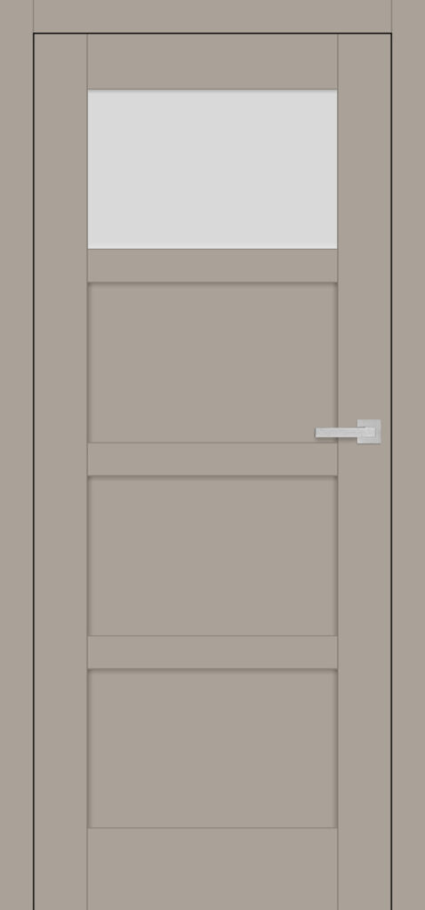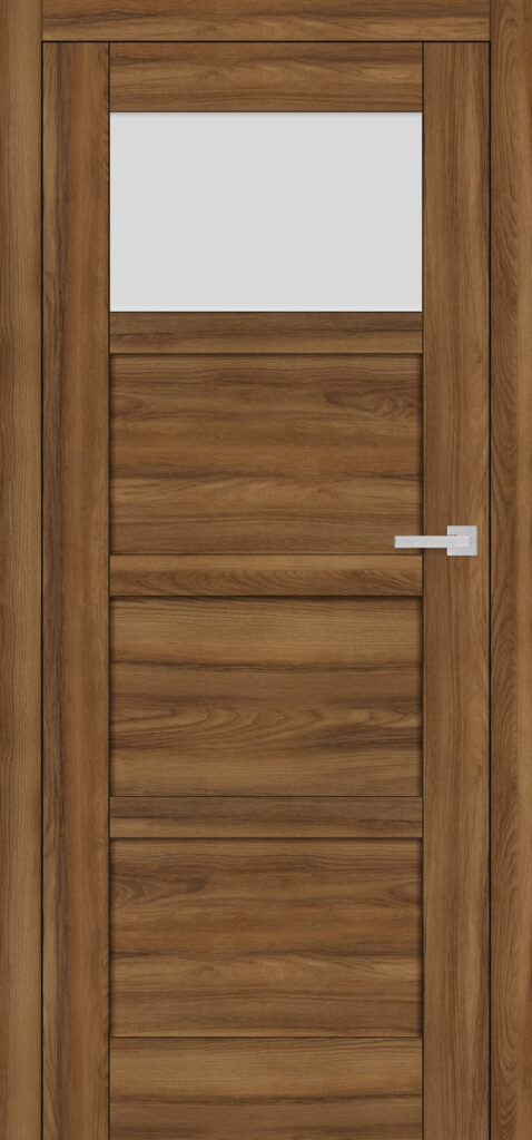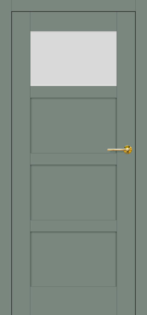 Wariant Juka 7 należy do subserii z równomiernymi podziałami skrzydła na cztery poziome płyciny. Tu górne pole jest przeszklone (do wyboru szkłem matowym, przezroczystym lub czarnym), pozostałe są pełne. Prezentowany model to trafny wybór m.in. do łazienki, toalety, pralni.