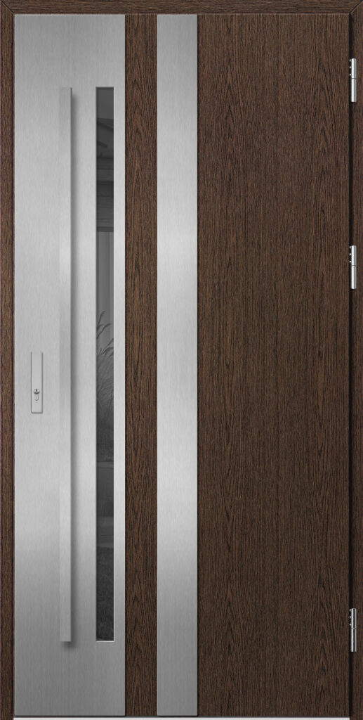 - LABEL INOX – panel ozdobny o grubości 2 mm w wykończeniu INOX umieszczony na powierzchni skrzydła tworzący delikatny efekt 3D.