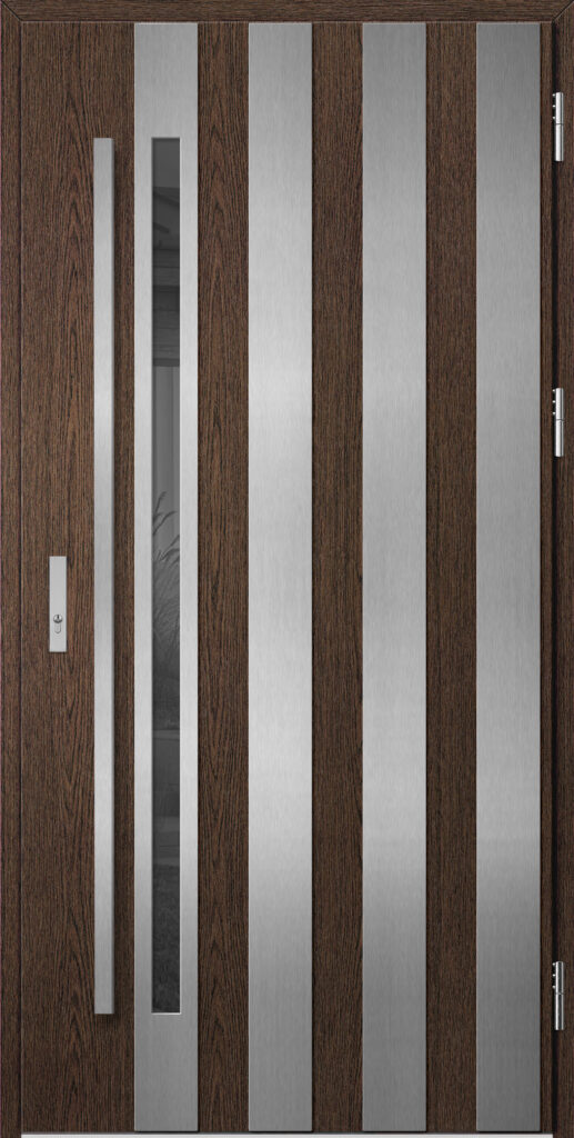 - LABEL INOX – panel ozdobny o grubości 2 mm w wykończeniu INOX umieszczony na powierzchni skrzydła tworzący delikatny efekt 3D.