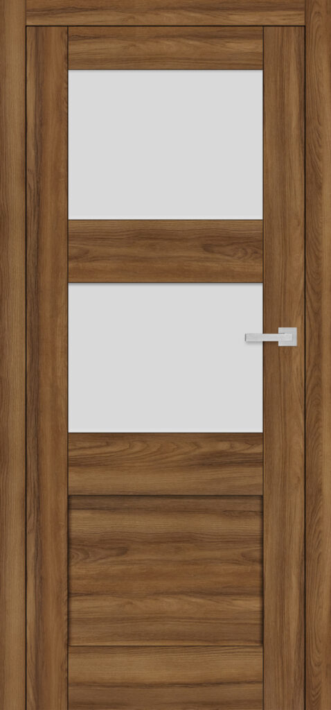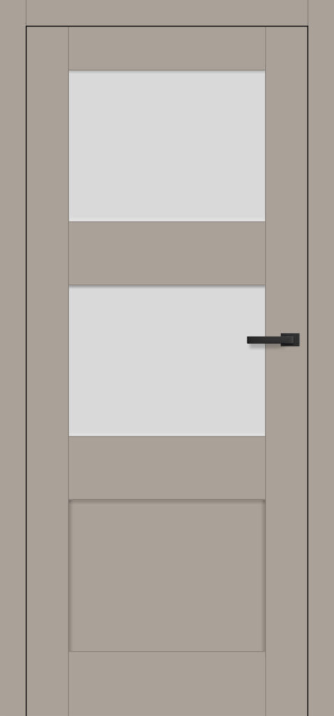 Wariant Lawenda 4 należy do subserii z równomiernymi podziałami skrzydła na trzy poziome płyciny. Tu dwa górne pola są przeszklone (do wyboru szkłem matowym, przezroczystym lub czarnym), dolne jest pełne. Model będzie idealny w wejściu m.in. do gabinetu, sypialni, pokoju dziecięcego.