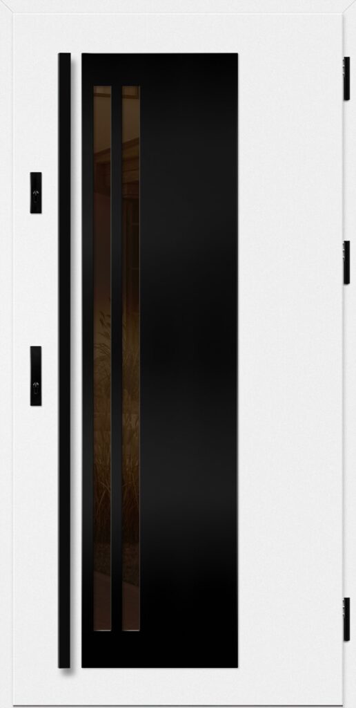Drzwi wykonane z blachy stalowej, zabezpieczone okleiną PCV, która odznacza się wysoką odpornością na zmienne warunki atmosferyczne, promieniowanie UV. Zastosowanie wysokiej jakości materiałów, gwarantuje nie tylko estetykę, ale również trwałość i bezpieczeństwo na lata.