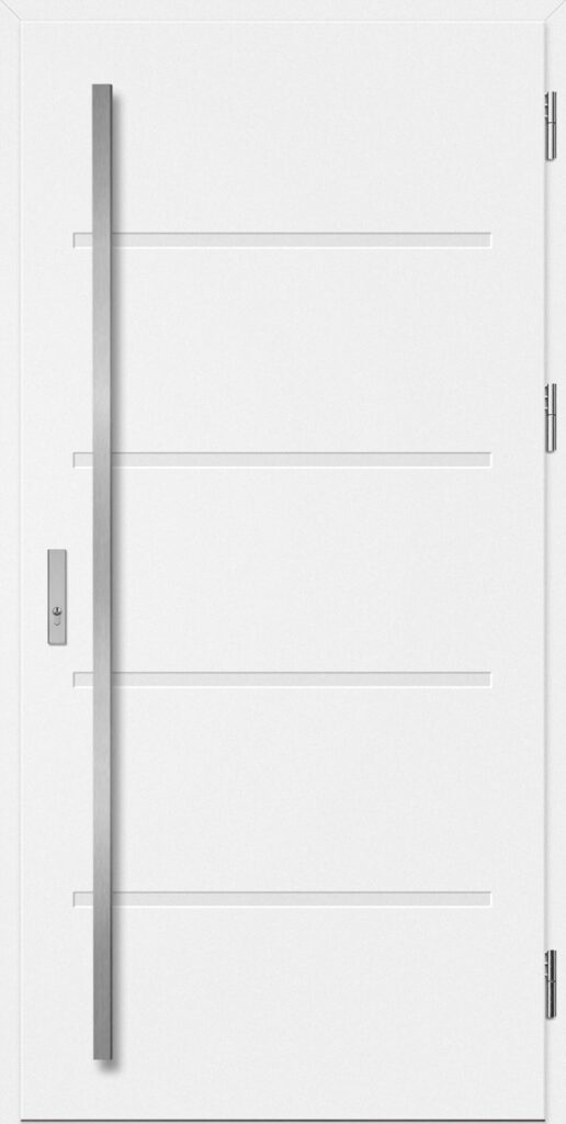 Drzwi wykonane z blachy stalowej, zabezpieczone okleiną PCV, która odznacza się wysoką odpornością na zmienne warunki atmosferyczne, promieniowanie UV. Zastosowanie wysokiej jakości materiałów, gwarantuje nie tylko estetykę, ale również trwałość i bezpieczeństwo na lata.