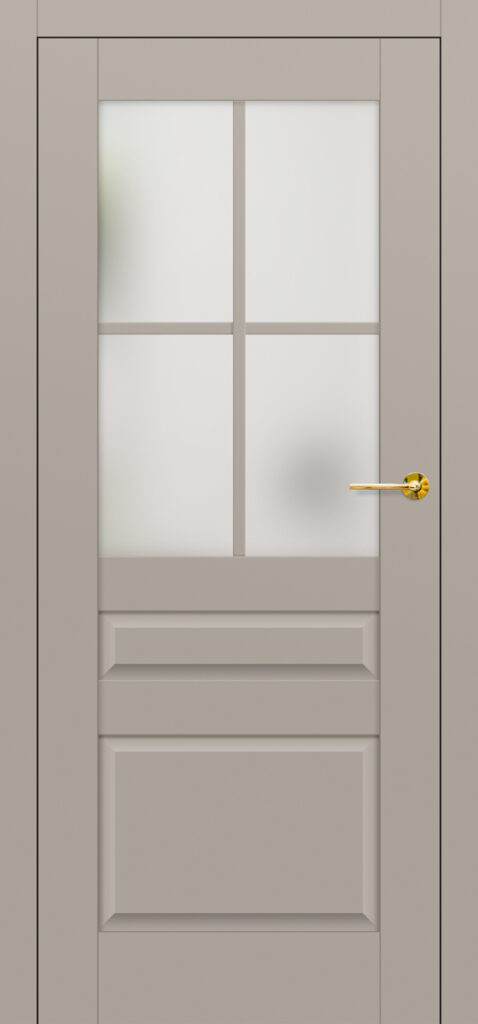 Wariant Peonia 3 w dolnej partii skrzydła ma dwa ozdobnie profilowane kasetony zainspirowane klasycznym stolarstwem francuskim. Powyżej znajduje się przeszklenie z dekoracyjnym podziałem na 4 równe pola. Warto zwrócić uwagę, że w kolekcji Peonia szpros jest wypukły – jak w zabytkowych drzwiach. Dzięki temu zarówno w starym, jak i nowym domu wykreuje atmosferę dawnych lat.