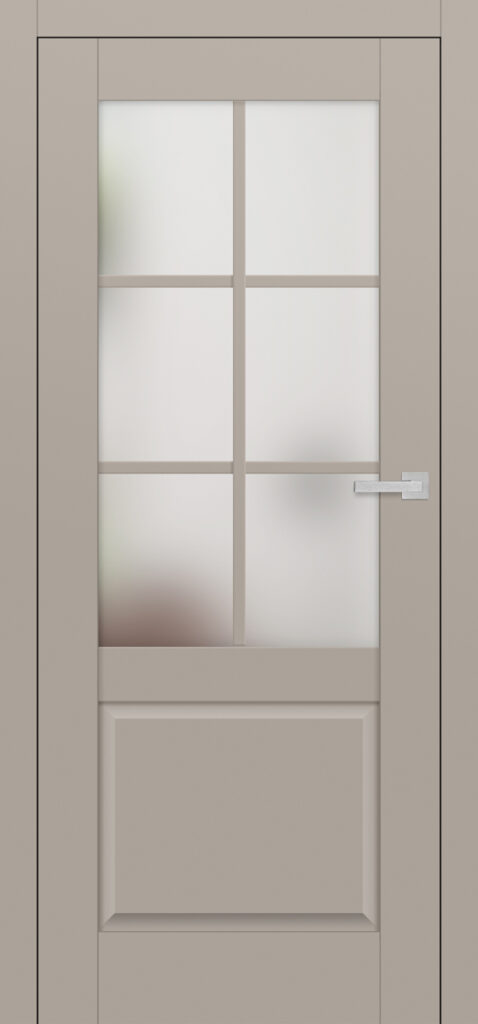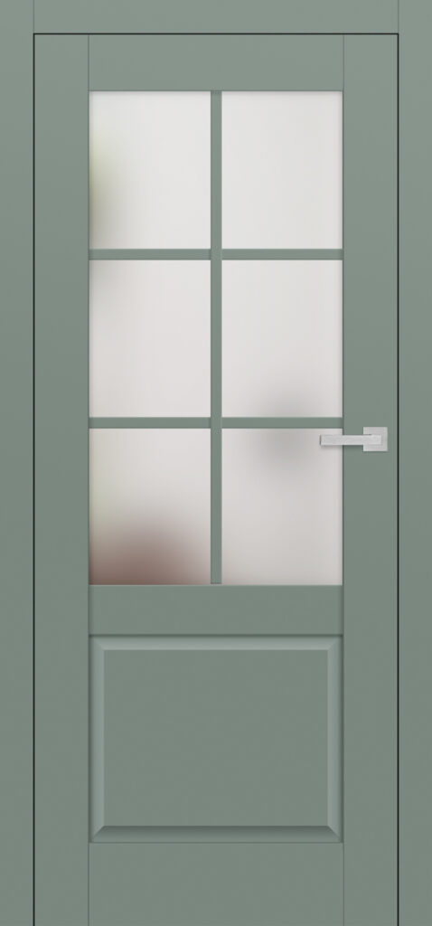 Wariant Peonia 2 u dołu skrzydła ma dużą, ozdobnie fazowaną płycinę. Powyżej natomiast – przeszklenie z dekoracyjnym podziałem na 6 kwater. Co ważne, w kolekcji Peonia szpros jest wypukły – jak w dawnych drzwiach. W efekcie znakomicie harmonizuje nie tylko z wnętrzami stylizowanymi, ale także z obiektami historycznych.