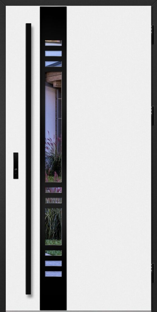 - LABEL INOX – panel ozdobny o grubości 2 mm w wykończeniu INOX umieszczony na powierzchni skrzydła tworzący delikatny efekt 3D.