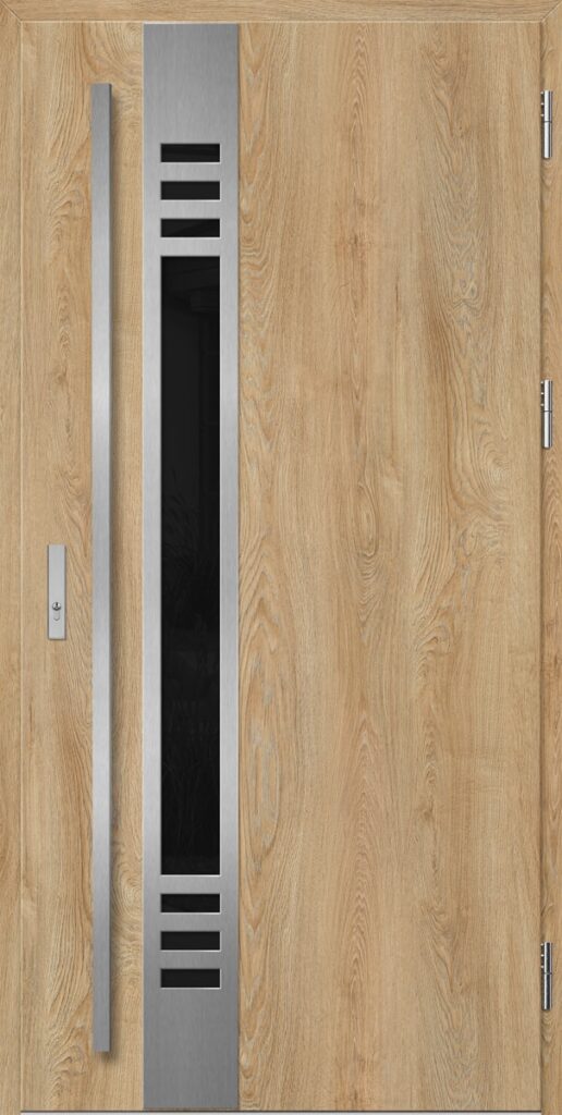 - LABEL INOX – panel ozdobny o grubości 2 mm w wykończeniu INOX umieszczony na powierzchni skrzydła tworzący delikatny efekt 3D.