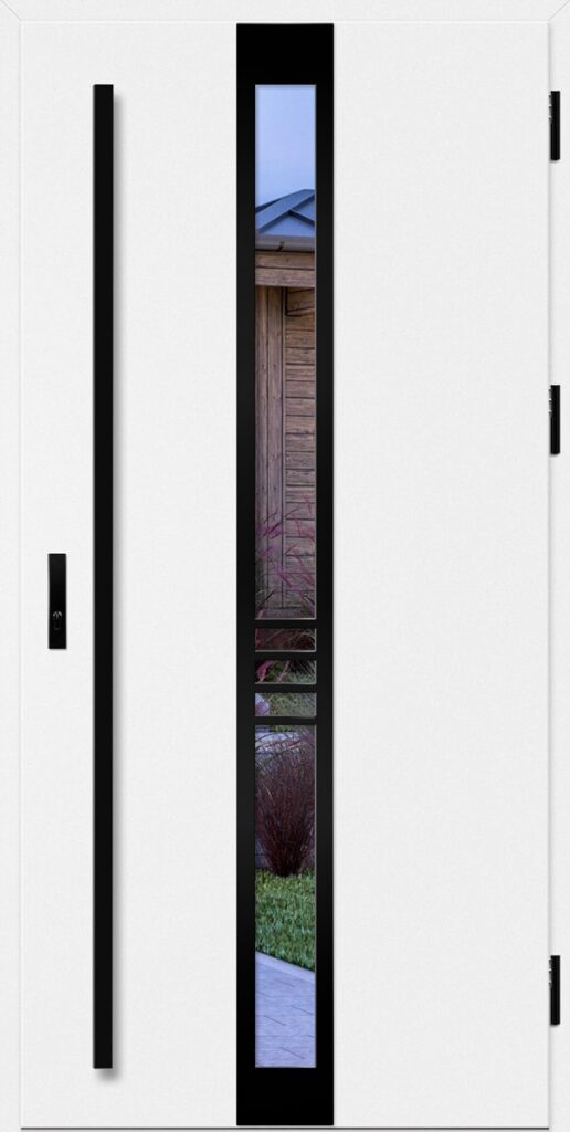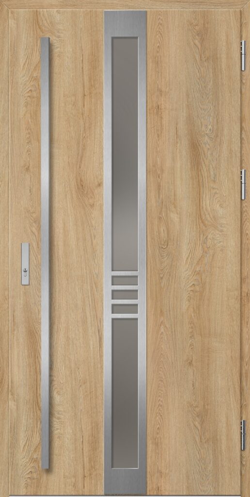 Drzwi wykonane z blachy stalowej, zabezpieczone okleiną PCV, która odznacza się wysoką odpornością na zmienne warunki atmosferyczne, promieniowanie UV. Zastosowanie wysokiej jakości materiałów, gwarantuje nie tylko estetykę, ale również trwałość i bezpieczeństwo na lata.