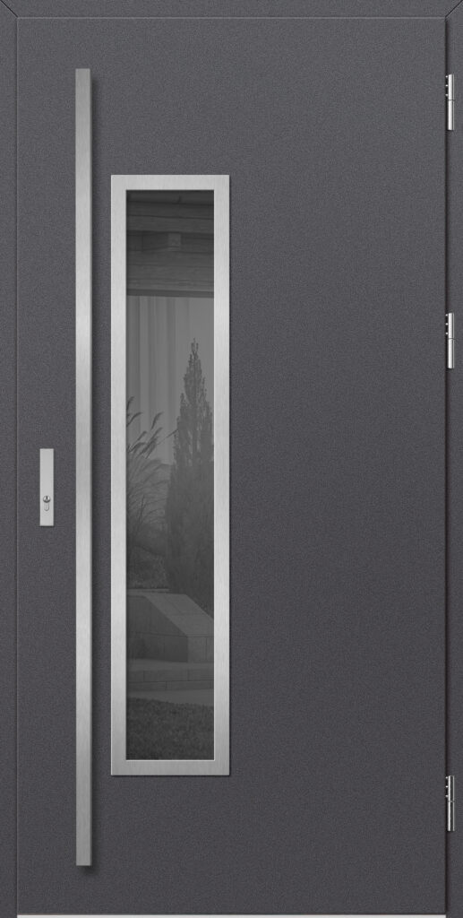 - LABEL INOX – panel ozdobny o grubości 2 mm w wykończeniu INOX umieszczony na powierzchni skrzydła tworzący delikatny efekt 3D.